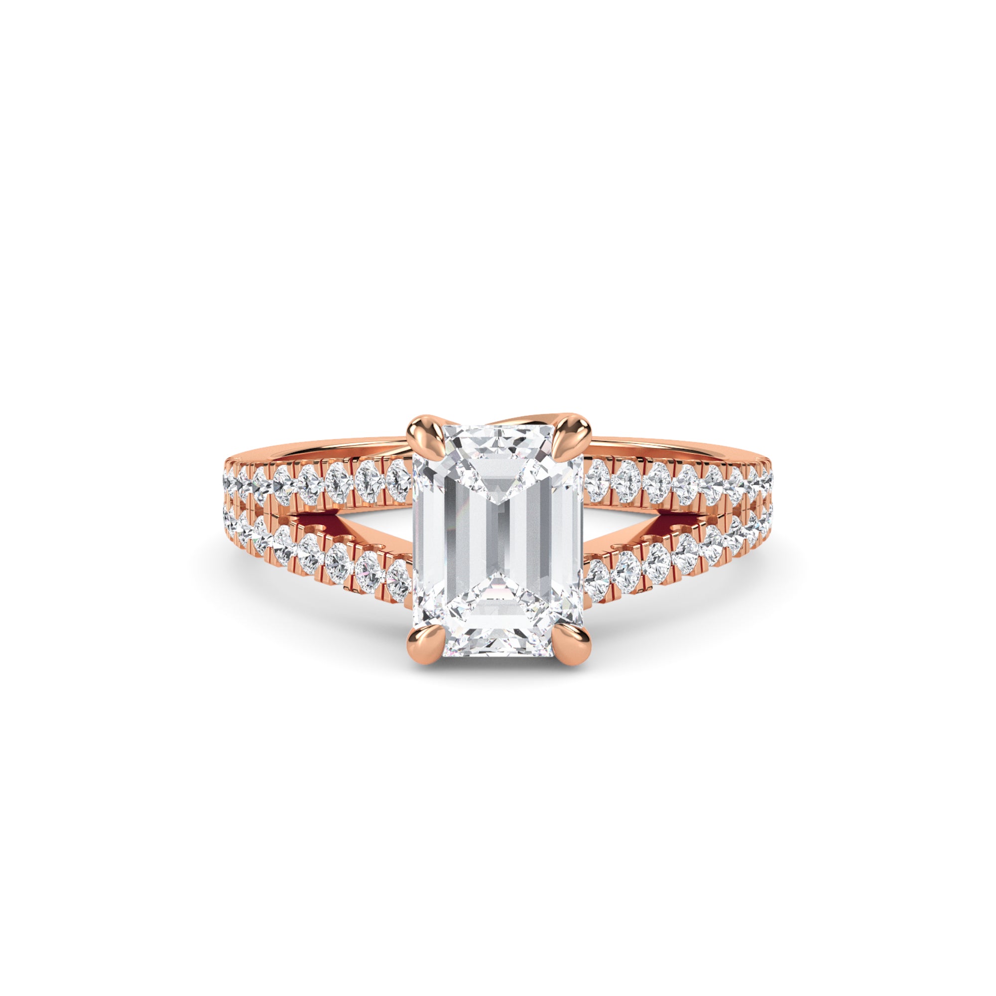 Emerald Cut Spilt Shank Engagement Ring